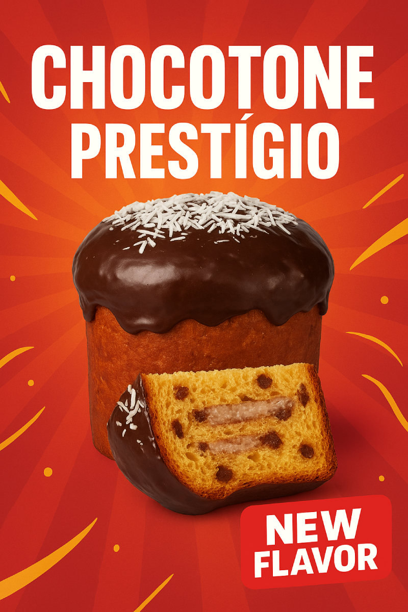 Descubra o delicioso Chocotone com Recheio Prestígio da marca New Flavor, um verdadeiro convite para os amantes de um sabor incrível. Com 550g de pura indulgência, cada fatia é repleta de um recheio irresistível que mistura o sabor do chocolate com a textura cremosa do Prestígio. Ideal para acompanhar um café da tarde ou para festas, este chocotone promete agradar a todos os paladares.
